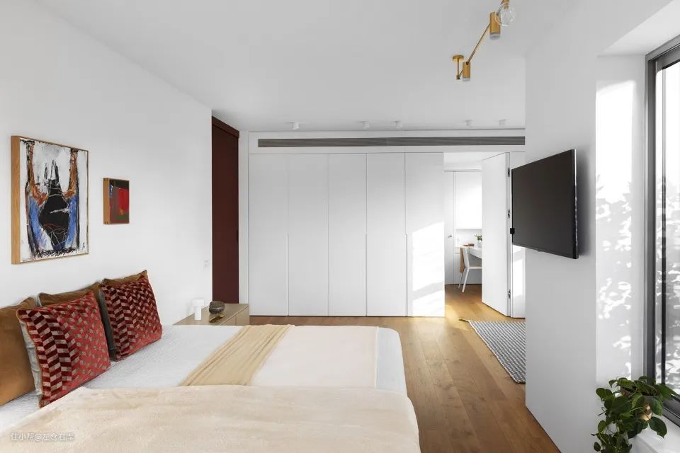 - 定制柜代替墙面,作为卧室书房隔断,节省空间又美观