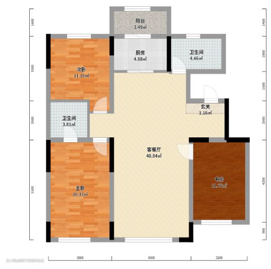 卧室相比公共区域更注重舒适性,地面通铺木地板,床头靠背也是咖色,还点缀了明亮温暖的搭毯。