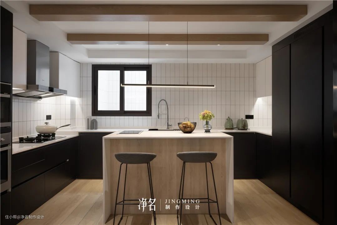 厨房采用了L型操作台设计,最大化释地放了厨房的操作空间,小型岛台的置入,不仅合理利用了空间,而且打造出一个供家人畅谈的场所,减少了心灵隔阂,拉近了家人之间的距离。