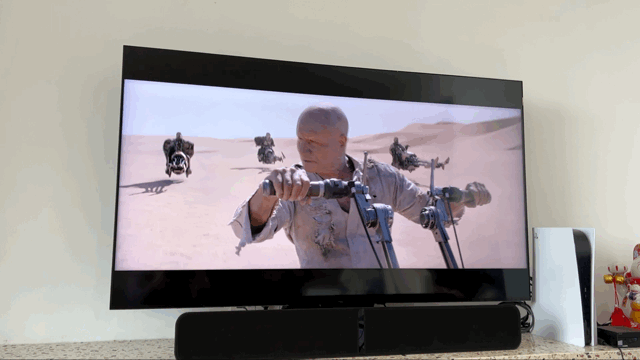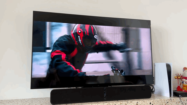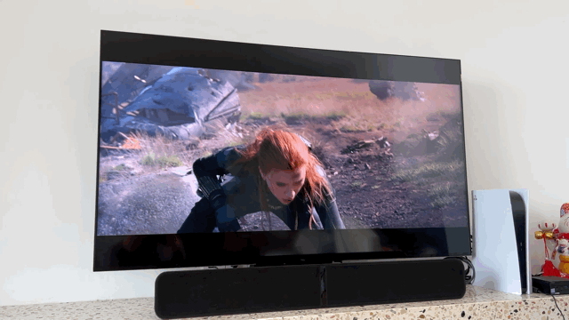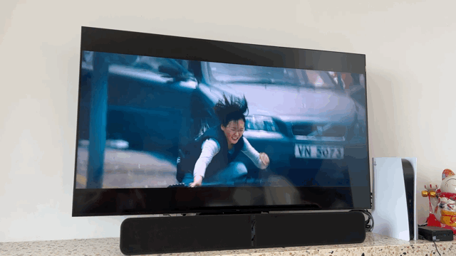 在观看另一部电影是《黑寡妇》,女主的黑寡妇的深呼吸声,以及模仿大师沉稳的脚步溅起水花的声音配合最后拔剑划过空气的声音都让我可以更沉浸在声音和画面之中。配合FLEX 2i的包裹感让我可以感受到声场的包裹感,这样的体验并不是单一的回音壁所可以带来的。