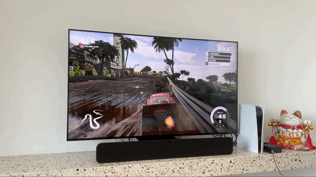 配合5.1声道的游戏体验如何呢?在S10 低音炮的加持下,拥有低音效果的这套5.1声道系统在游戏中的低音效果也是非常震撼的。而且在当下很多游戏除了画质出色之外在声音表现也是。在赛车游戏中你可以充分体验到在游戏中赛车引擎轰鸣带来的快感,车辆在赛道上的碰撞以及快速驶过泥泞道路与石子路、水泥路带来的不同反馈。如果在配上一套赛车方向盘的话,应该就可以让我感受一把真实赛车带来的快感了。
