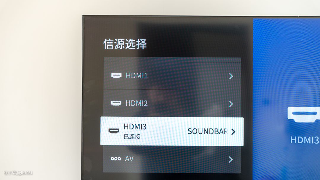 在信号源选择下可以看到连接到HDMI 3也就是电视的HDMI ARC接口后,设备已经可以正常识别为SOUNDBAR了。