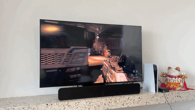 完成了上述配置之后,就是在电视端的操作了。首先你可以通过HDMI线材连接到SOUNDBAR 2i的HDMI ARC接口上,另一端连接到电视的HDMI ARC接口。当然除了这个方式SOUNDBAR 2i也有像是AUDIO IN和OPTICAL IN接口可以选择。不过我还是推荐HDMI ARC了,因为本身HDMI的带宽肯定还是优于另外的接口的。连接之后可能因为电视不同,还是需要在电视端的设置中选择一下音频输出设备的。