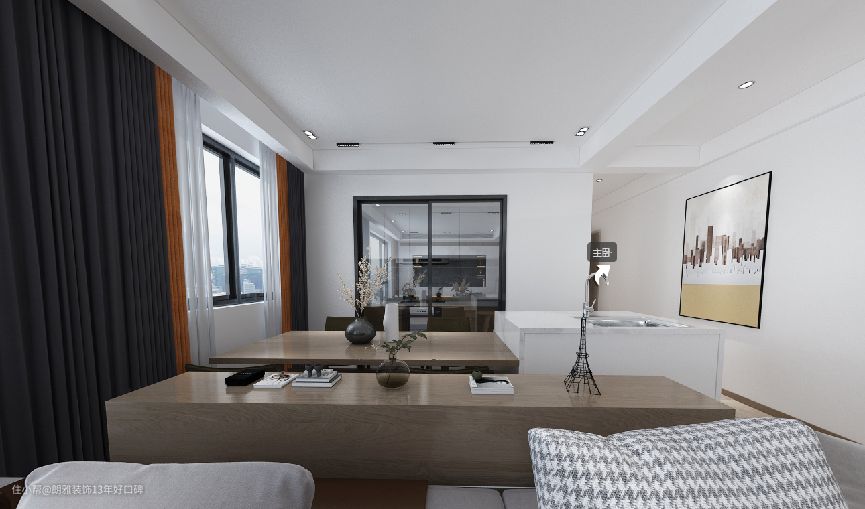 餐客双厅是一个开放性的大横厅,后方的背景墙挂一幅画作为装饰,也让空间打破沉闷之感。