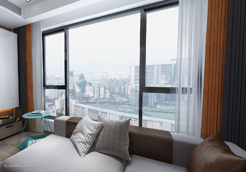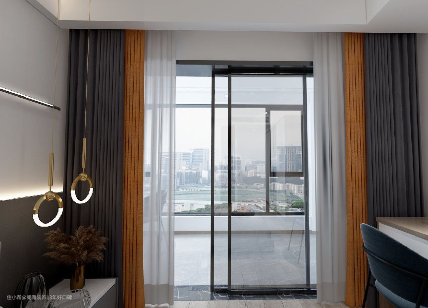 卧室的落地窗,让空间拥有更加良好的采光,室内明亮通透,于阳台赏室外美景,让夫妻二人的生活多加一丝浪漫惬意;