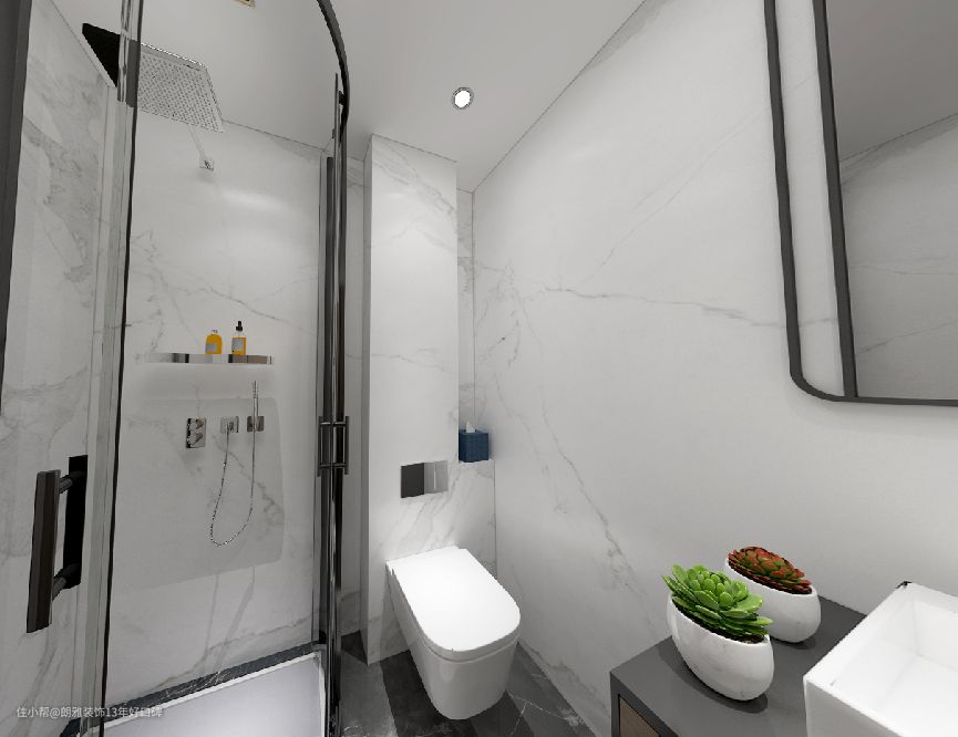 卫生间的规划分割堪称完美,干湿分离让客卫彻底实现功能与美感的相辅相成,盆栽绿植盎然有趣。洗手台加入收纳的设计,让整体空间更实用。