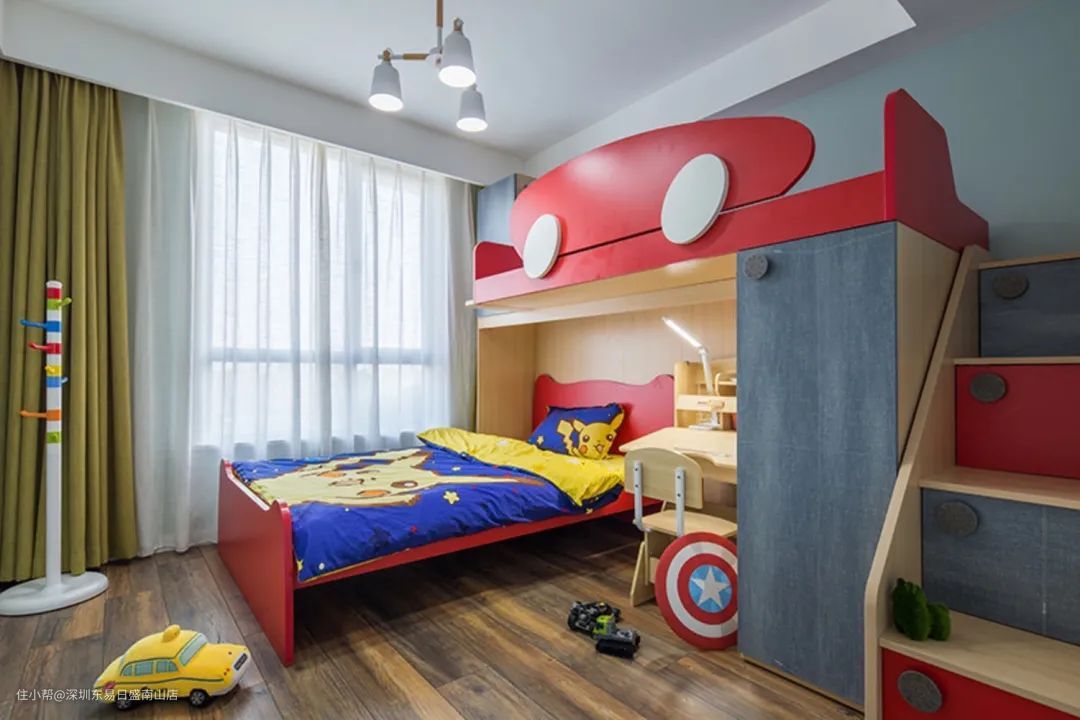 儿童房想要买到尺寸刚好合适的家具不是一件容易的事情,尤其是二胎家庭,想要把两张床、柜子、书桌等家具都塞进小小的儿童房里并不简单,所以比起买家具,全屋定制更能合理运用每一寸空间,根据户型特点合理布局。