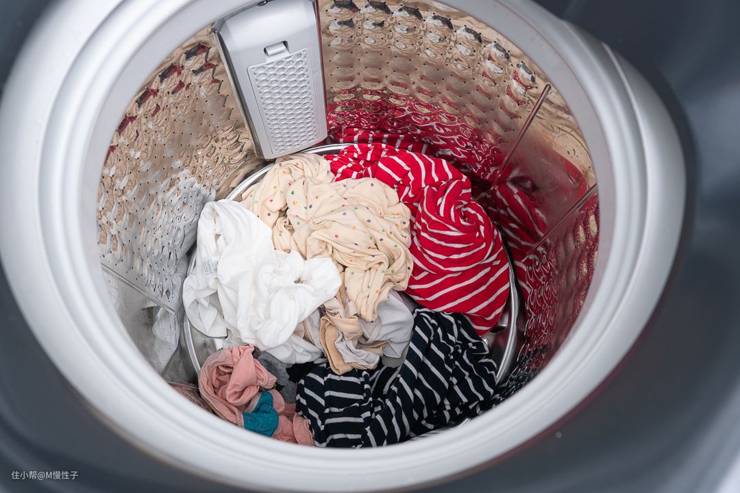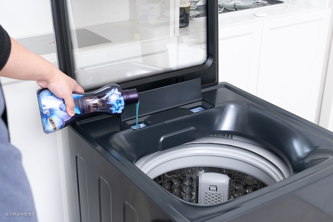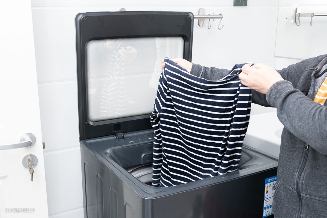 首先衣物的投放,由于是从上部投放,不用弯腰,就能轻松完成。对于家里有老人、孕妇、腰腿不太好的人十分方便。