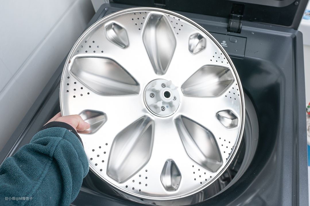 波轮也是全金属材质,以往波轮背面易藏污渍的位置也都采用了圆角设计,减少挂脏的几率。