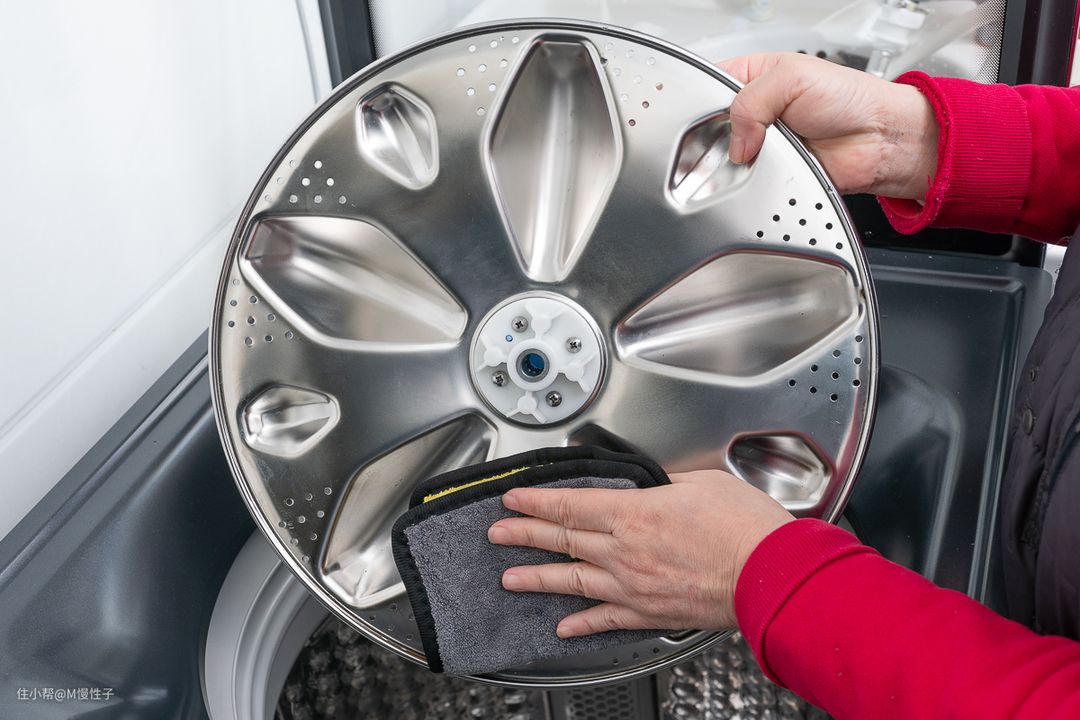 在一周的使用后,拆卸波轮桶底,波轮底部只有非常少量的污渍,使用湿抹布一擦一抹就能轻松清洁,这是使用传统洗衣机时无法想象的。