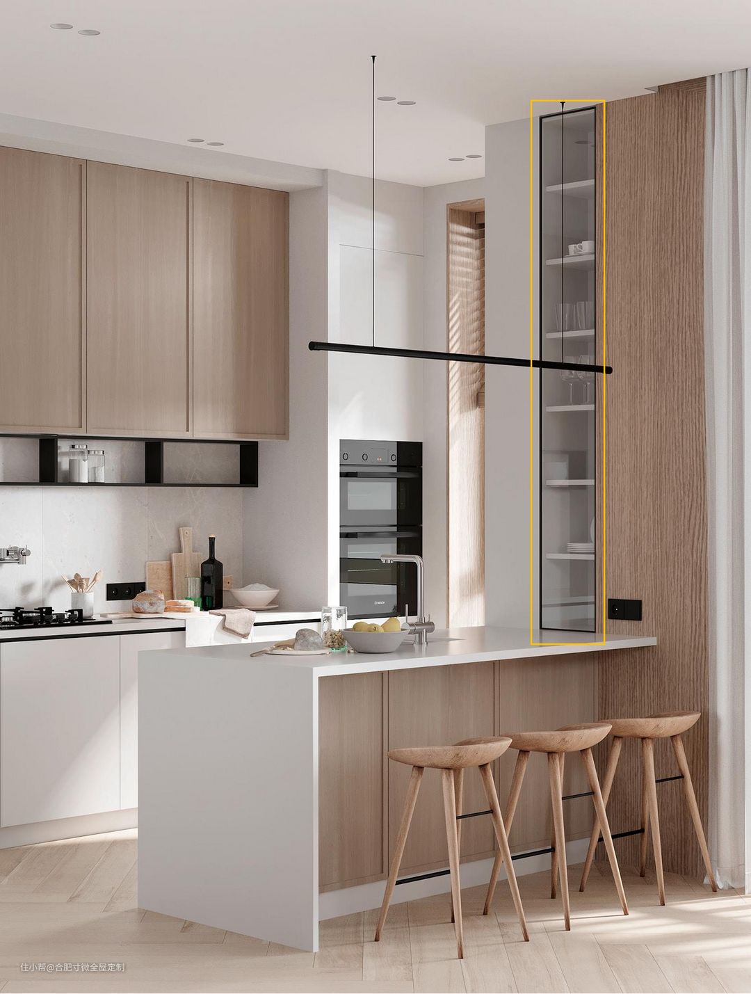 这种开放式收纳可以用来放些碗盘、酒杯、小厨电,不仅不占空间,还能缓解厨房台面拥挤的难题。