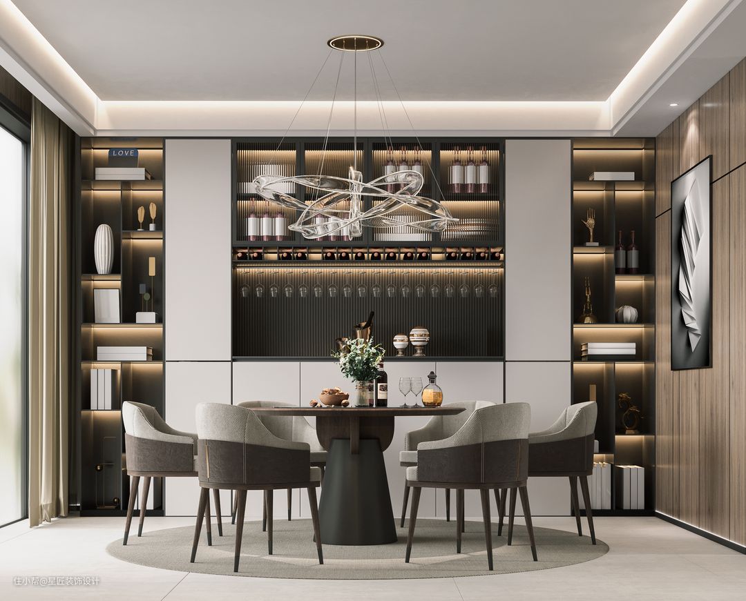 餐厅褐色与黑色形成了轻奢的质感