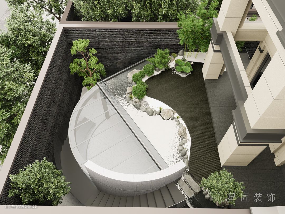 室外园林采用了日式园林的设计方式,圆顶里便是休闲的品酒区域