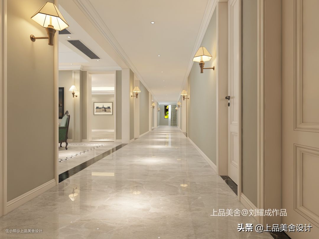 过道大气简约,长度达到了24米,宽度达到了2.4米,在这过道中行走,犹如到了欧式城堡一般。