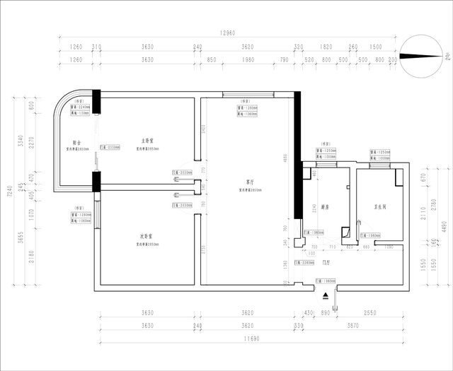 本案改造重点,主要考虑进门玄关问题,厨房、卫生间动线是否合理,以及满足书房和临时客卧的需求。针对这几点问题,我们平面上做了一下改动: