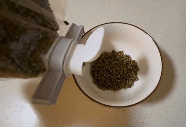 用这款出料嘴,夹在袋装食材上,倾倒时不用重复拆—封的动作,非常顺手。