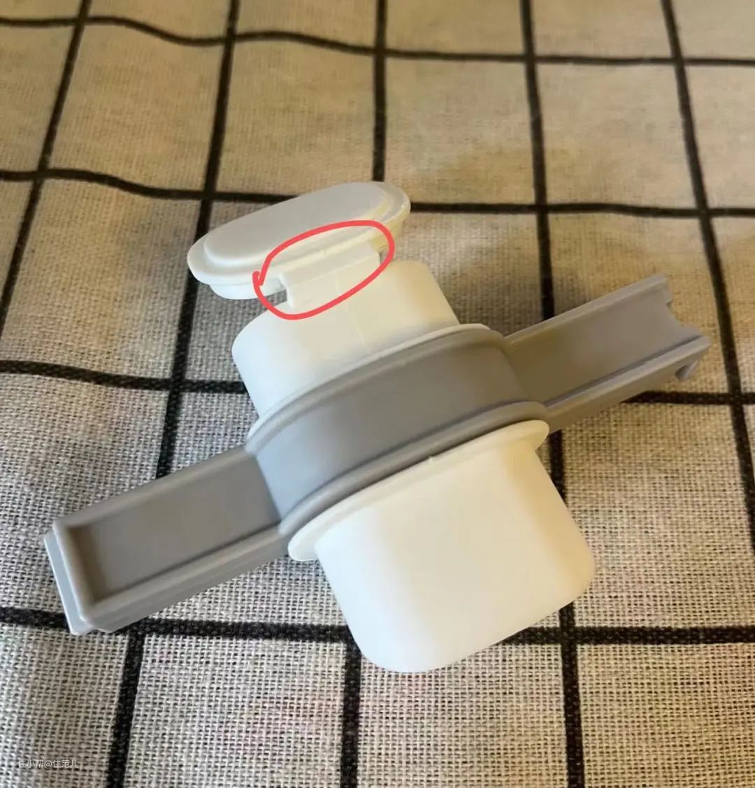 出料口最上端的塑料反复弯折,时间长了可能会老化断裂。
