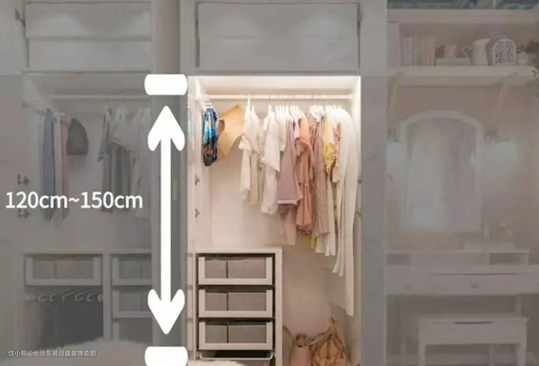 长短衣服最好区分挂,这样可以避免浪费短衣下面的空间,因为不同的衣服长度也不一样,所以建议根据自己的穿衣习惯来确定具体高度,一般参考高度是: