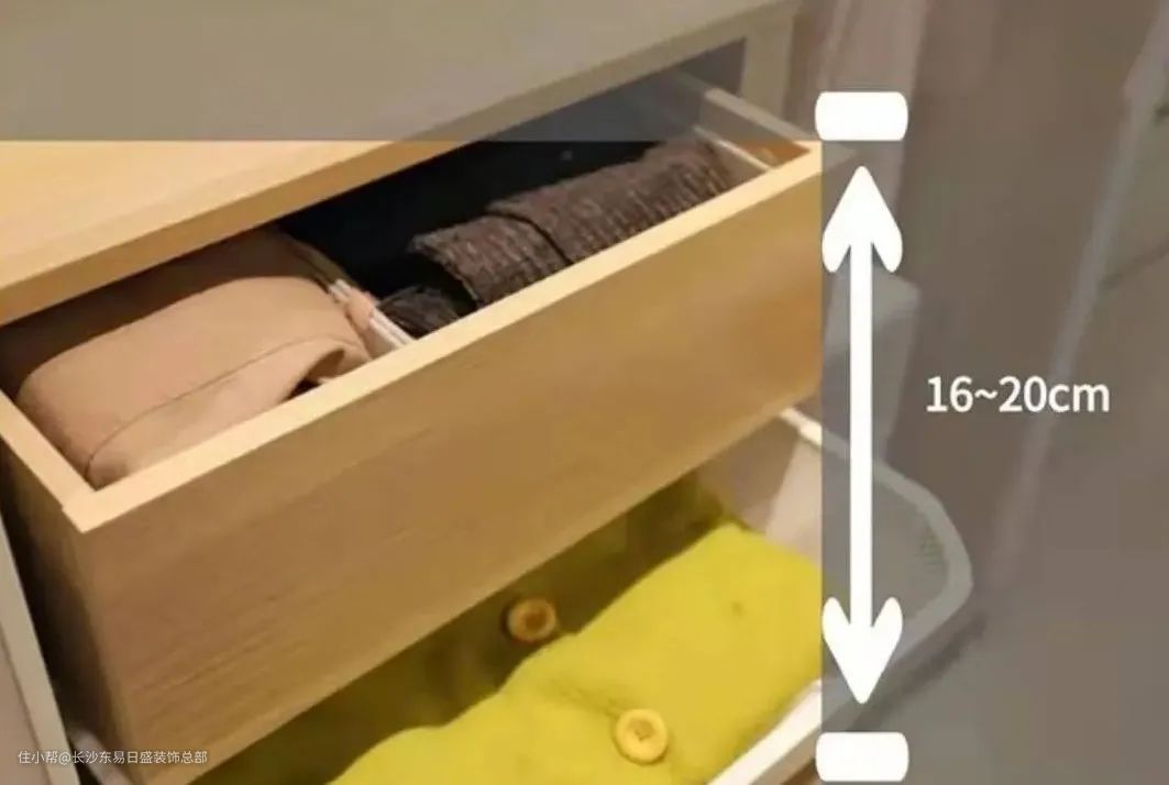 但是不建议抽屉做的太深,不然衣服堆得太高,拿取不方便,20cm是最深了。
