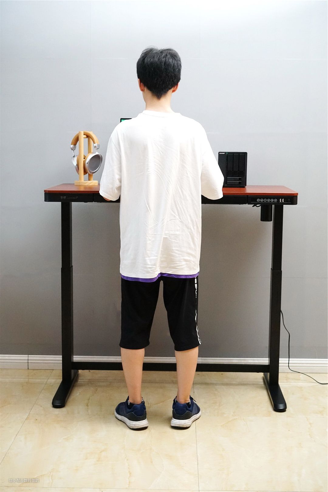 临时找的“模特”身高174mm,调整到105cm的时候高低真好合适,久坐了后换成站立姿势后,关节、腰等部位从弯曲变成直立,整体压力有明显的缓解效果。