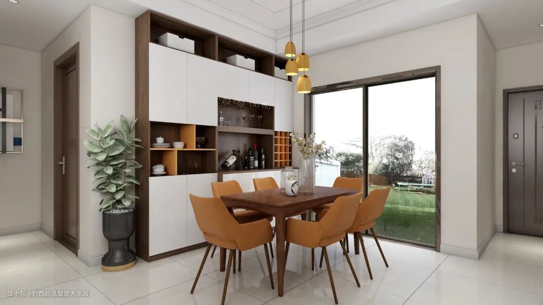 隔断式矮餐边柜能有效节省空间,让餐厅看起来更有意境,更敞亮,矮柜上方还可以搭配装饰品、植物,起到巧妙的装饰作用,让屋子变得精致小资~
