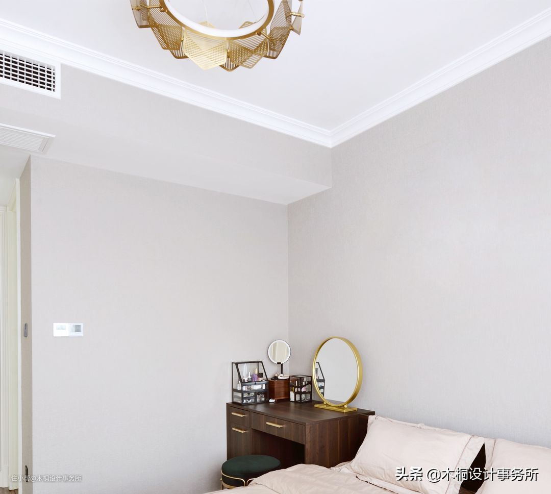 家里的层高有限,不想吊顶但是又需要过线,那么可以把灯线藏在顶角线后面的槽里,免除吊顶的麻烦。