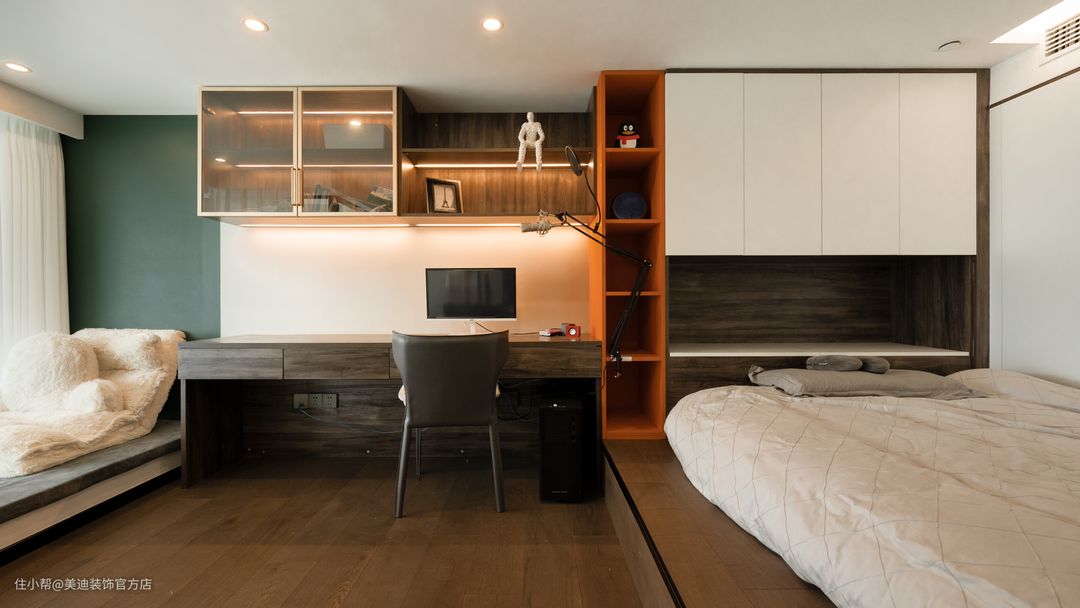 改造成了现在的双书房设计及生活阳台会客区域