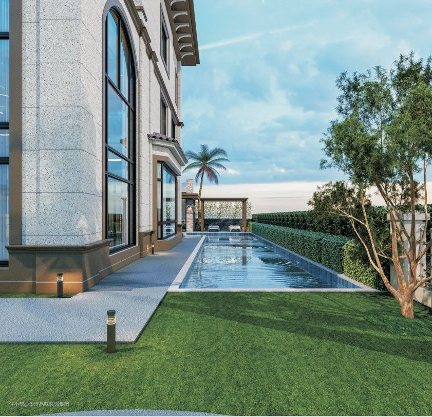 在院子中建造了室外的游泳池,在天气良好的时候业主和家人可以边游泳边放松,尽情享受休闲时光。