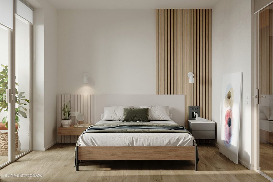 小户型卧室也可以做到“麻雀虽小五脏俱全”,抛弃传统床头柜,打造背景墙+衣柜的一体化形式,让家具与墙面形成统一整体。既节省了使用面积,还能让视觉空间更简洁,空间利用率max。