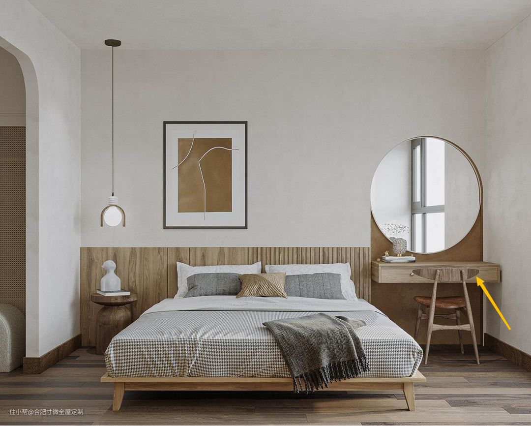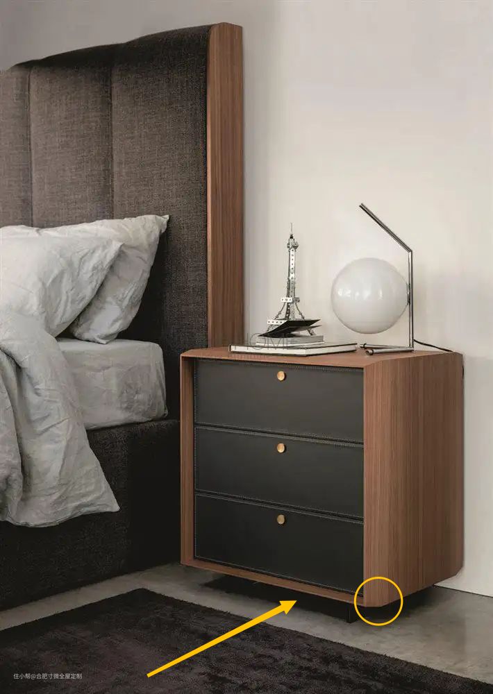 传统卧室,都是床两边放两个床头柜,真住进去了才发现根本就不实用,不仅下方容易积灰难打扫,还经常磕到脚。