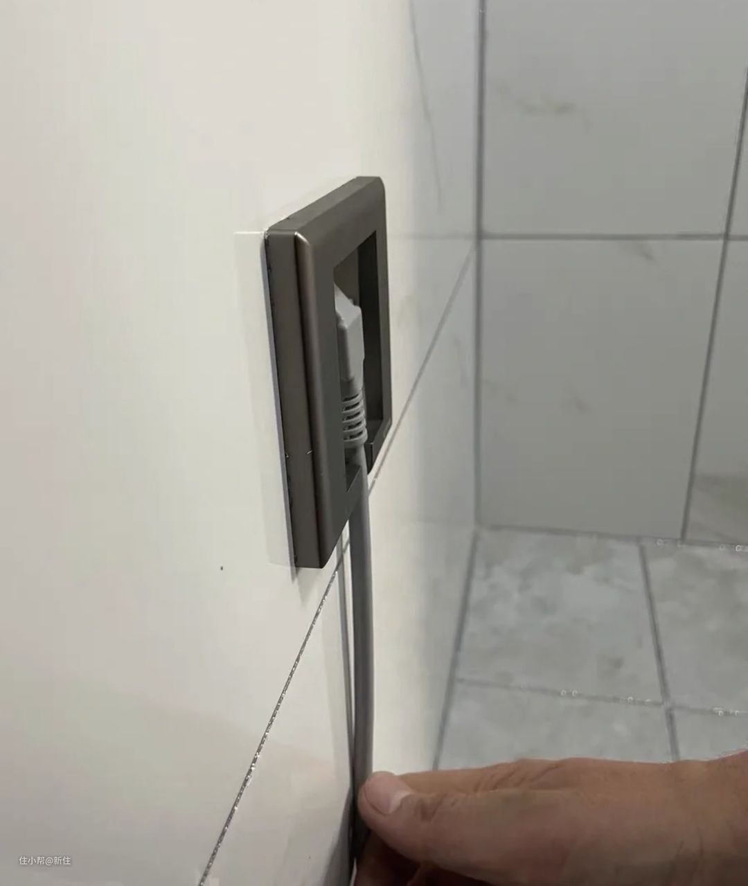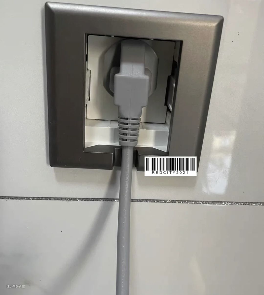 而对于插座被挡一半的情况, 可将普通插座更换为内嵌式的,这样插头插上后是隐藏在里面的,外侧和瓷砖平齐,不会凸出,即便被遮挡也不影响。