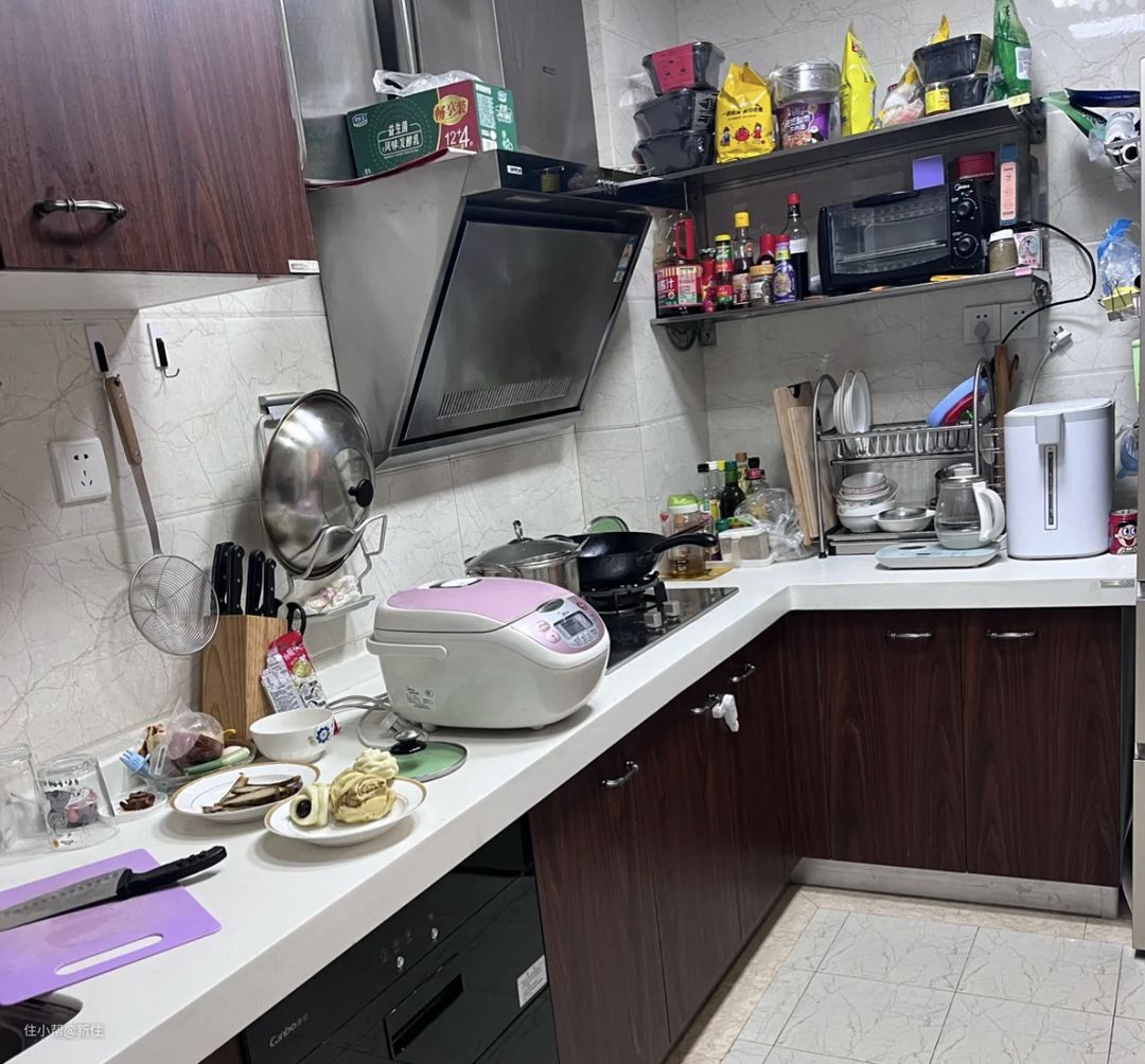 ③没有专门的小厨电收纳位置,导致厨电乱摆放;