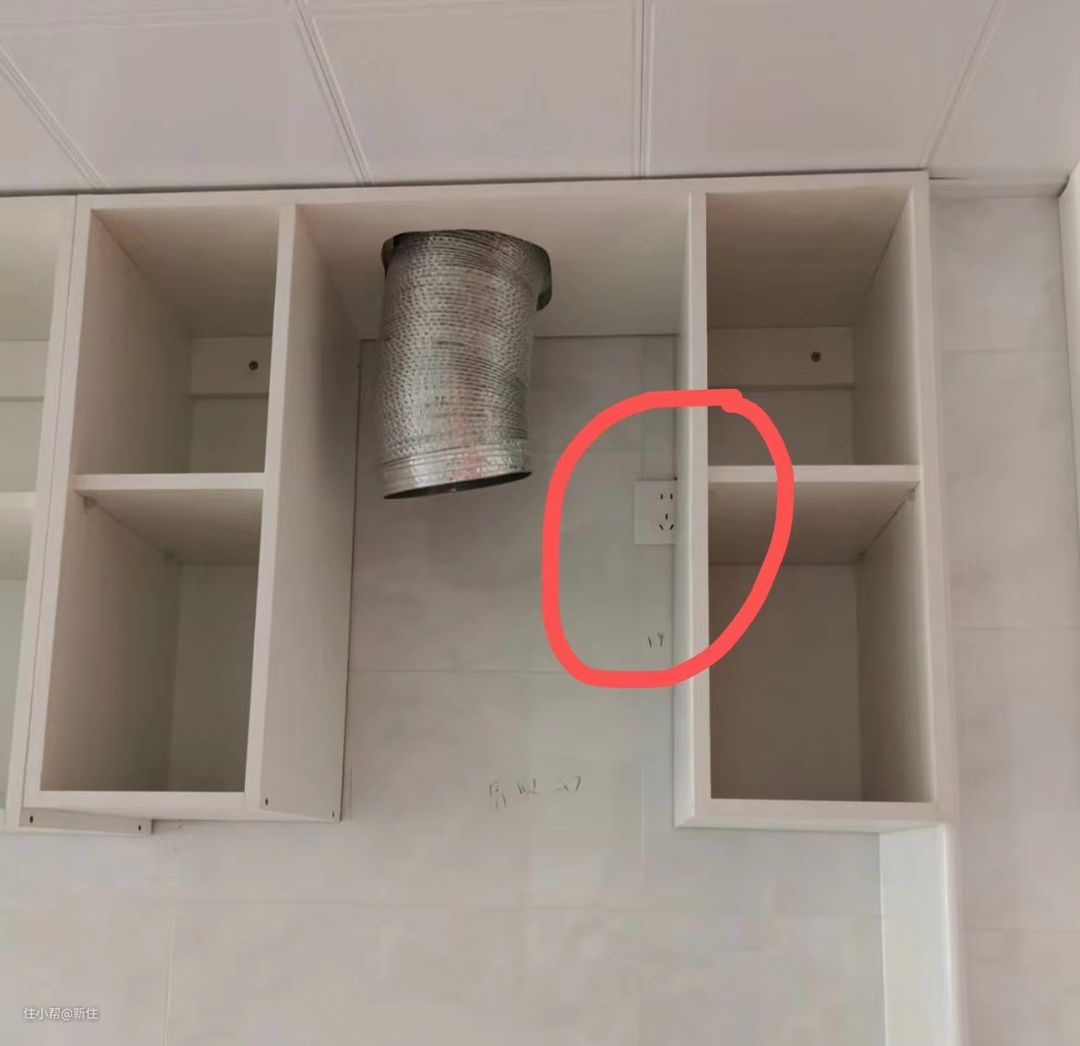 稍微高级点的,就是预留了插座,但位置不合适,吊柜直接挡住一半,插座插不上。