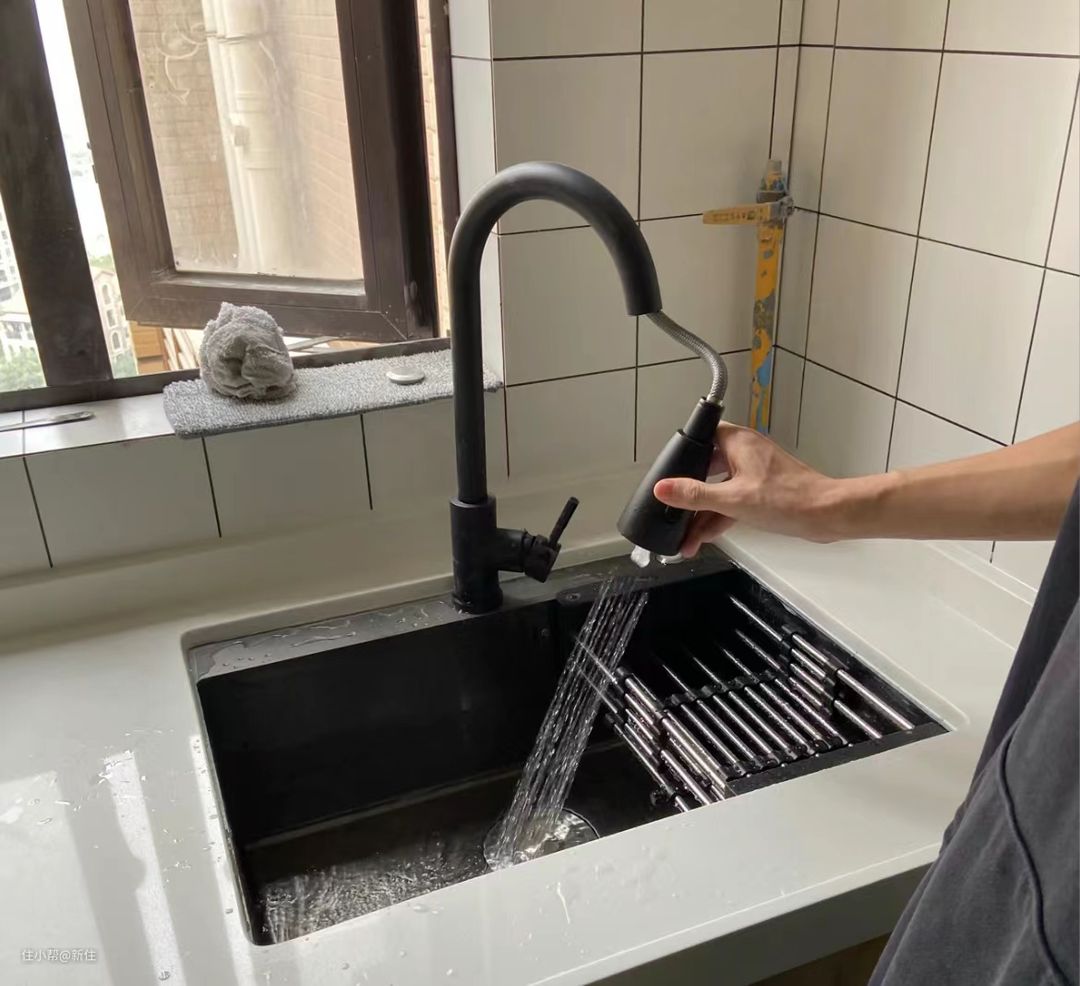 属于有必要优化的部分,普通的水龙头虽然也能正常用,但加点钱替换为抽拉式的,不仅可以很方便的清洁水槽四周,还能变换出水模式,应对不同的果蔬、碗盘清洁场景。