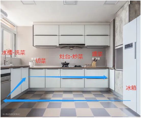 所谓动线,就是居住者在空间中为了达到某种功能使用的目的,所做的所有的动作,过程中的行为路线就是动线。典型的就是厨房动线,拿—放—洗—切—炒—摆,是一个很舒服的动作路径。