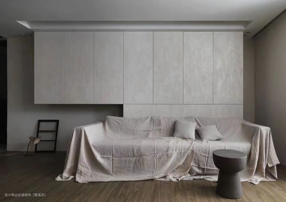 其实像白、米白、灰、棕等中性色也经常出现在现代风的家居设计中,只不过相对于颜色,“质感”才是侘寂风的精髓,侘寂风主张不加修饰,呈现出在自然岁月侵蚀下特有的斑驳黯淡,因此如果想要这种效果,水泥、硅藻泥、艺术涂料等能呈现原始、粗糙手感的涂料再搭配中性色是最适合的。