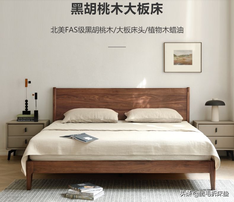 ①床框是北美FAS级黑胡桃木,环保性高,耐用性好。