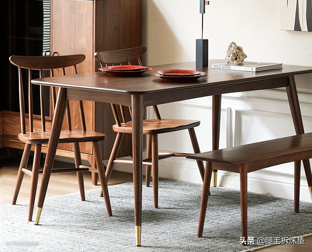 黑胡桃木的材质搭配上黄铜的桌角,餐桌的质感一下就凸显出来,放在餐厅颜值瞬间上升,而且性价比是真高。