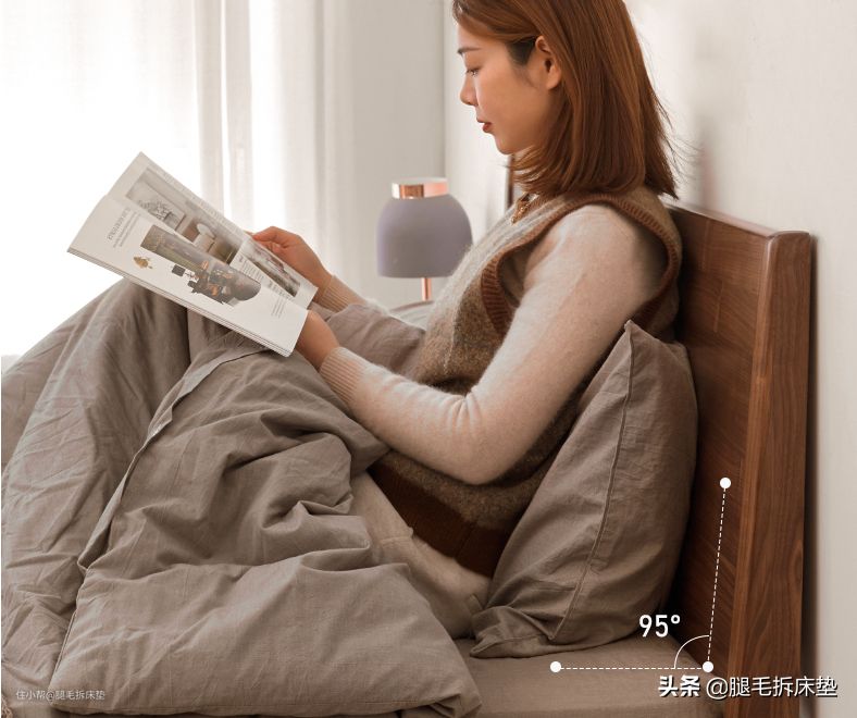 ②床背板外观大气,床头还有95°的倾斜角,久靠都不累。
