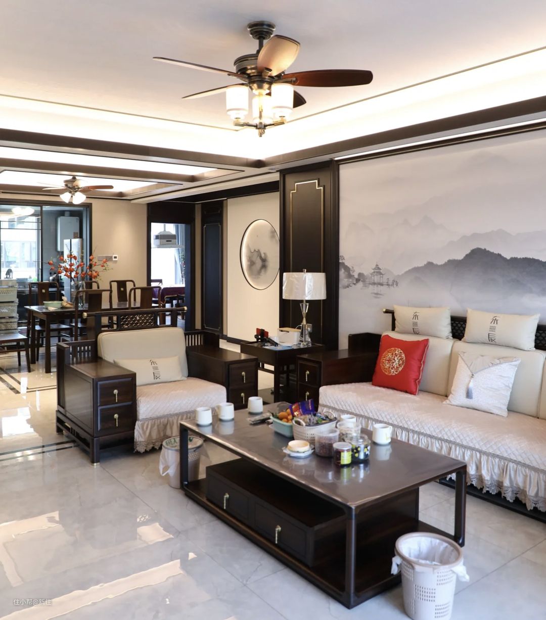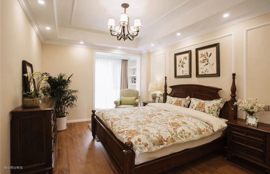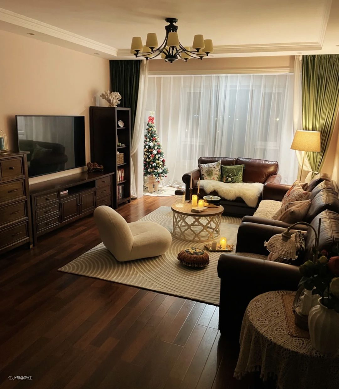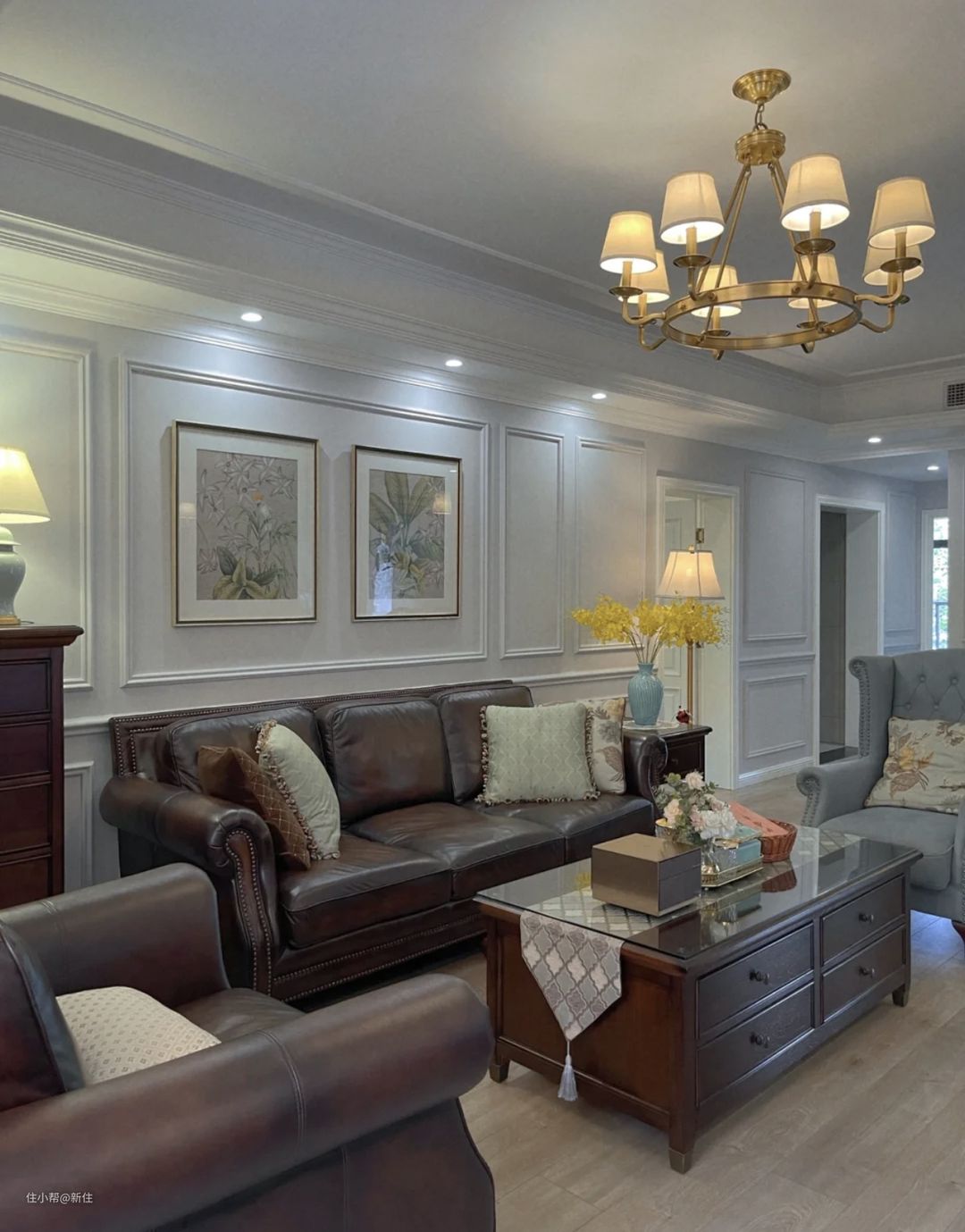 咳咳,这是中国人的美式风,除了用了美式家庭的灯具、深色笨重大沙发之外,几乎没有一点跟美式有关系。