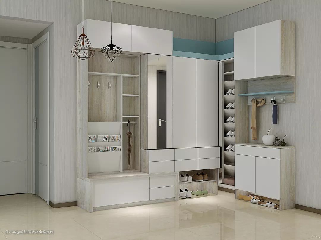 进门就乱糟糟确实很闹心,入户玄关采用分层分区设计,大小高低不同鞋子各有去处。薄柜内加入衣通挂钩设计,包包、雨伞等小物件拿取是不是更方便呢?