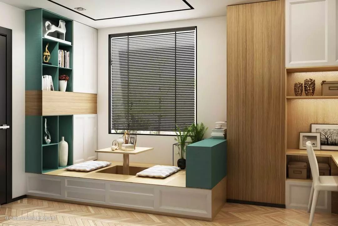狭长过道往往是最容易忽视的地方,空间窄小不知道怎么装,闲置出来又太浪费。结合户型,在过道处打造成一个小型功能房。一方面满足了大量的储物空间,另一方面开辟出了一片新的休闲区域,铺上被子还可摇身变成小卧房呢~