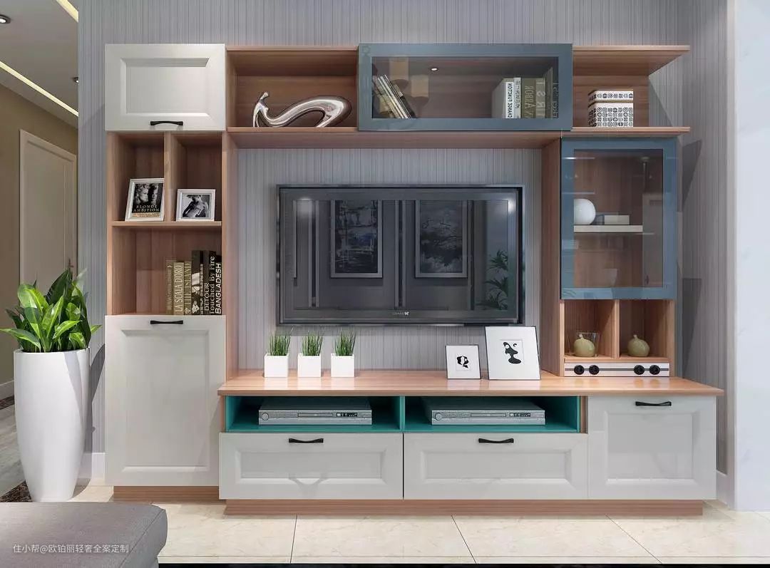 对于小户型家庭,空间利用是关键,充分释放墙面,可以大大提高空间利用率。电视柜采用“回”字型设计,有藏有露,搭配玻璃门设计,让客厅空间更有格调。