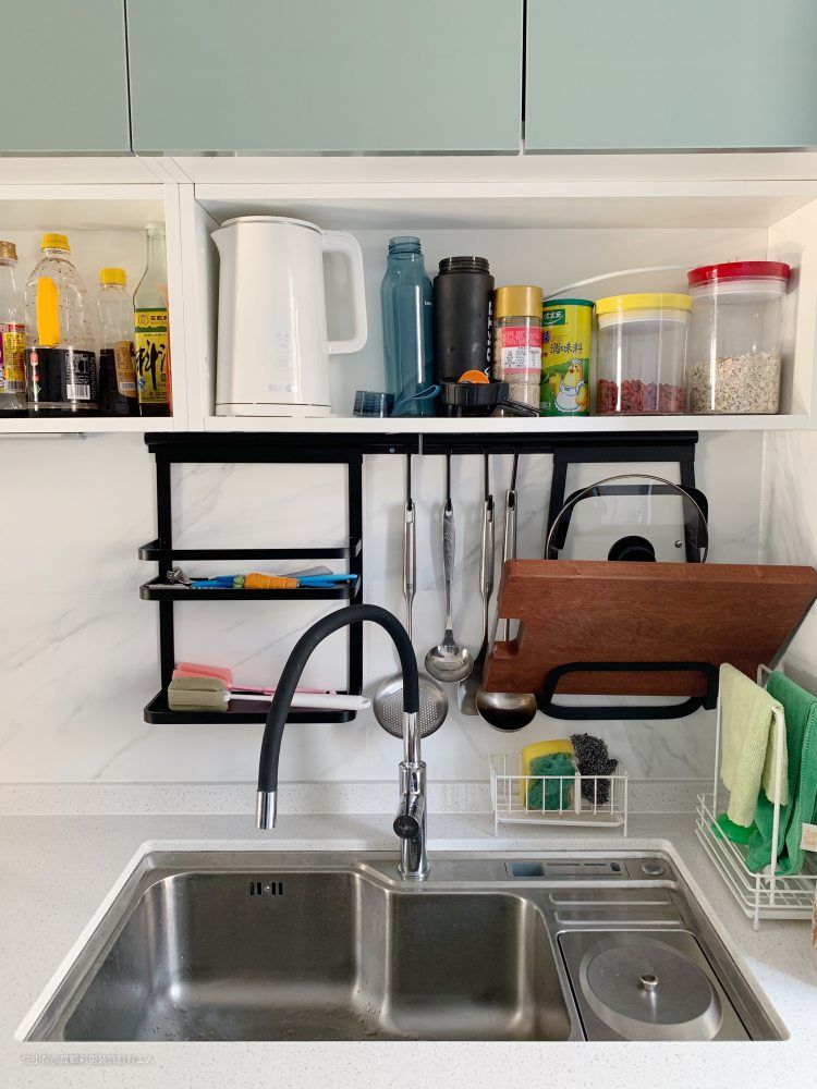 不喜欢挂置于墙的,也可以在吊柜底部加入拉篮存放各类物品,使用时轻轻一拉就能随手取到,不使用时也能隐藏收纳,让厨房看起来更加简洁~