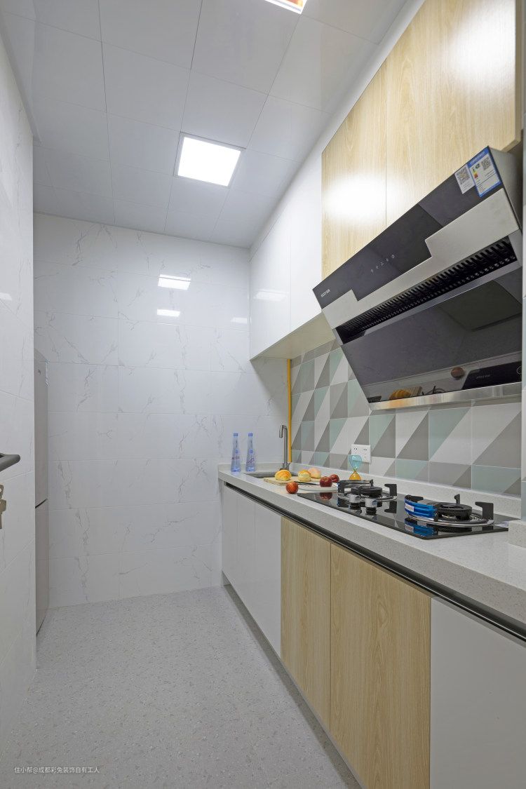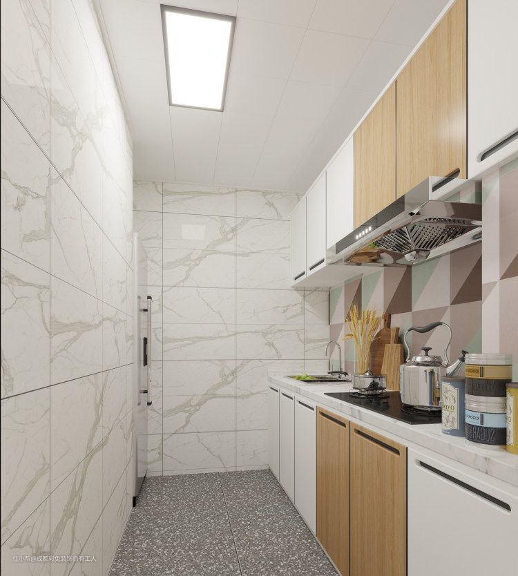 不过此布局也有明显的缺点,当操作区域排布密集时,所需的储物空间也日渐增多,很多小户型在装修时没有合理考虑储物问题,就导致了厨房杂乱、各类物品取放不便等问题。
