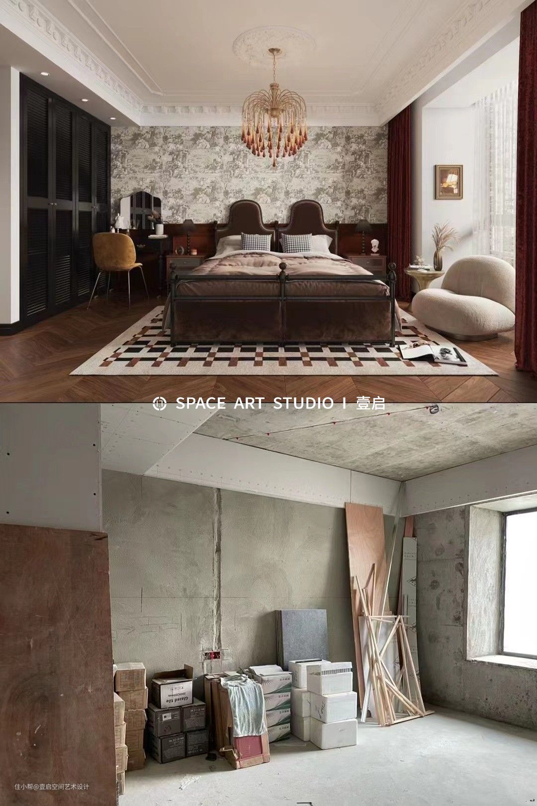 之前后台就有好多小伙伴问那套酒红色的法式轻奢什么时候完工,好想看看实景的还原度到底多高,今天就带大家来看看我们的工地现场,拱形门还原度简直不要太高,也太高级了吧!