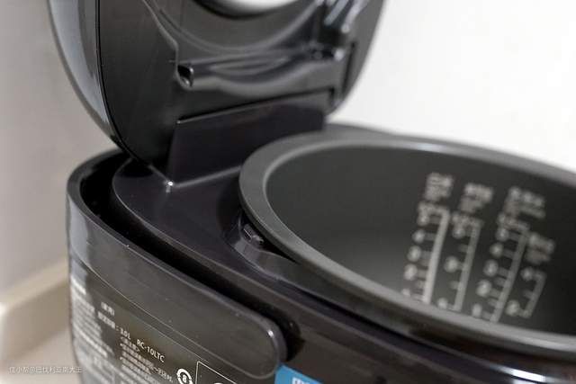 设计不到位的电饭煲最常被大家吐槽的一点就是开盖后的冷凝水问题,有的甚至会漏入煲边缘,移动时撒的满哪是。东芝这款在开合处做了导流槽,可以避免蒸汽水乱流,不过实际使用时我发现它其实也很少会有蒸汽水。