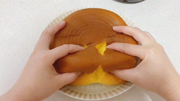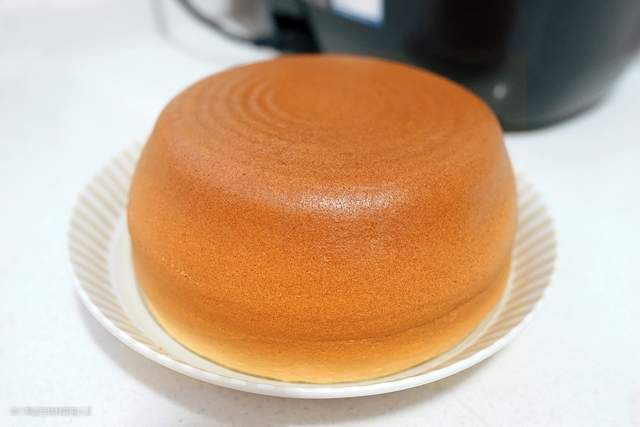 取出内胆倒扣在盘子上,整块蛋糕轻松脱落出来,完全不沾锅哦~轻轻触碰它还有duang~duang~的效果。