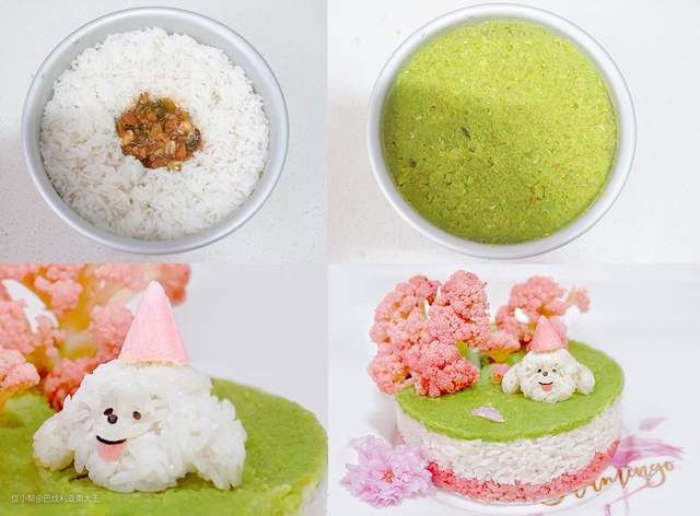 ►用白米饭捏个狗狗摆上去,应应景,整体粉粉嫩嫩的,看着就赏心悦目!