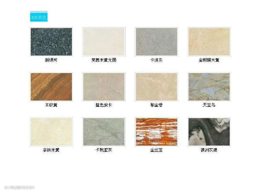 关于石材从重点分为A类、B类石材,若从颜色上选择尽量不选择红色石材;选购标准可以参详《市场上销售的部分石材放射性分类控制标准与数据》。